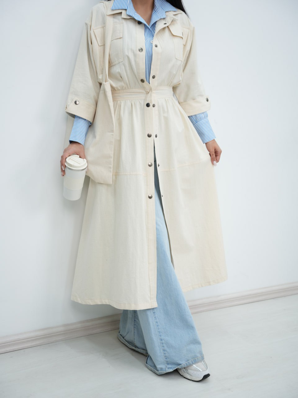 نقد و بررسی تخصصی مانتو بلند کمرکش پاریس کد 6220