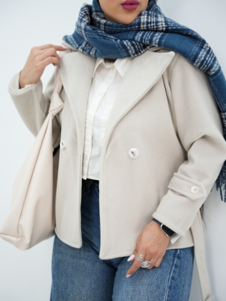 نقد و بررسی تخصصی پالتو فوتر کوتاه کمردار مومو کد 6470