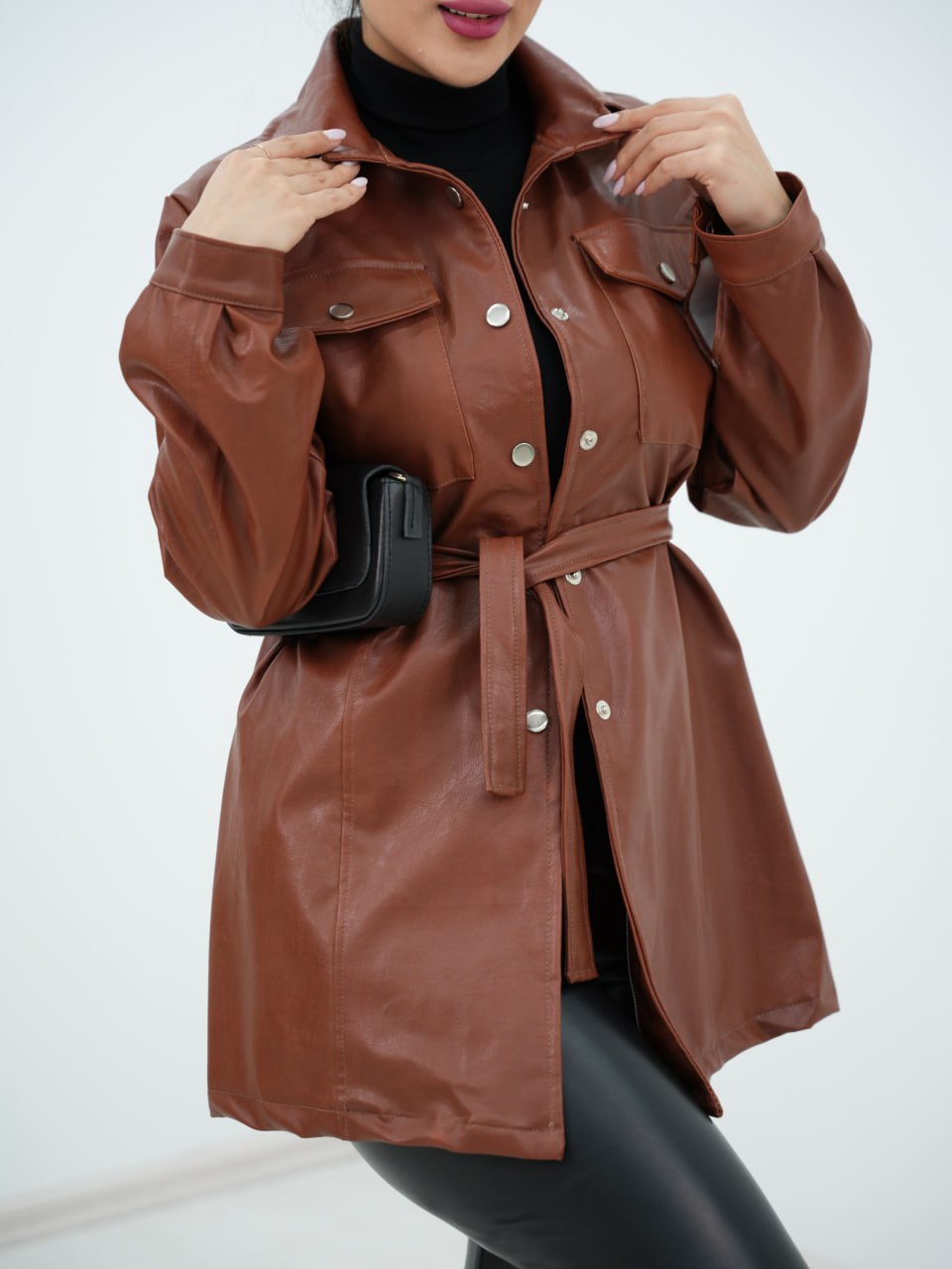 کت چرم کمردار دوجیب کارلوس کد 6490