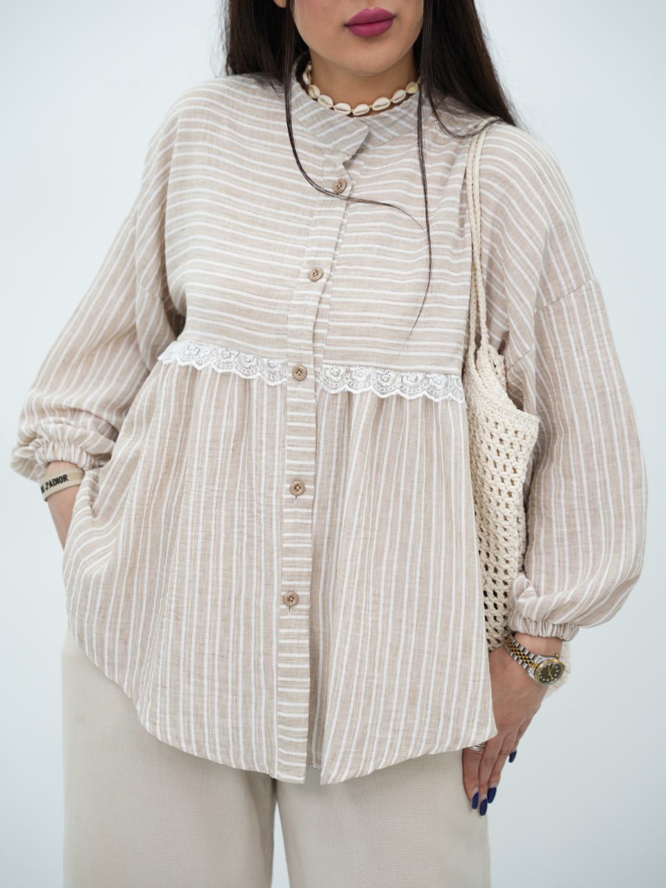 شومیز لنین راه راه عروسکی پارلا کد 6881