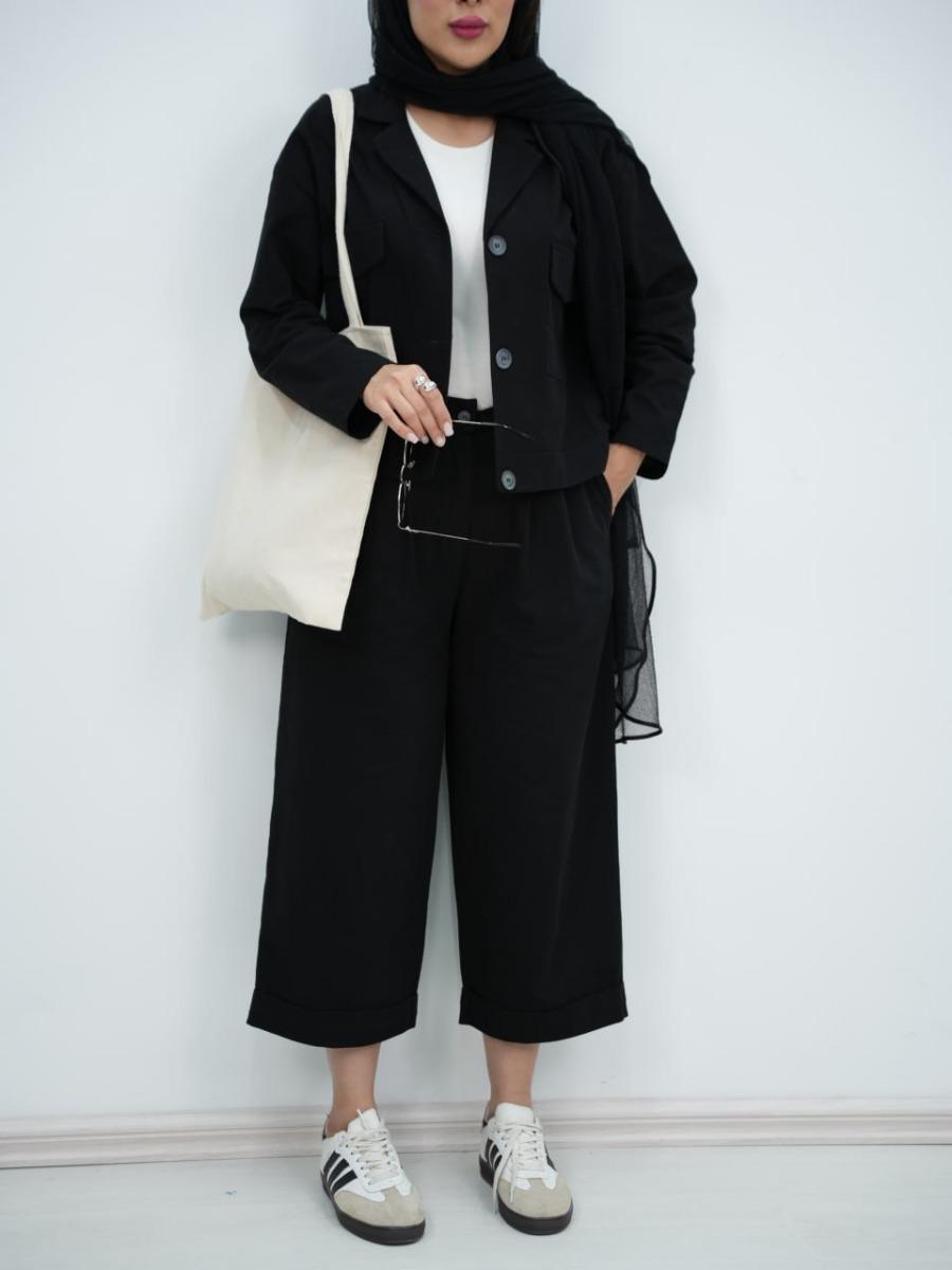 • ( جای کمر دارد - بدون لایه - شلوار جیب دار - پشت کمر شلوار کش دار - دکمه دار )