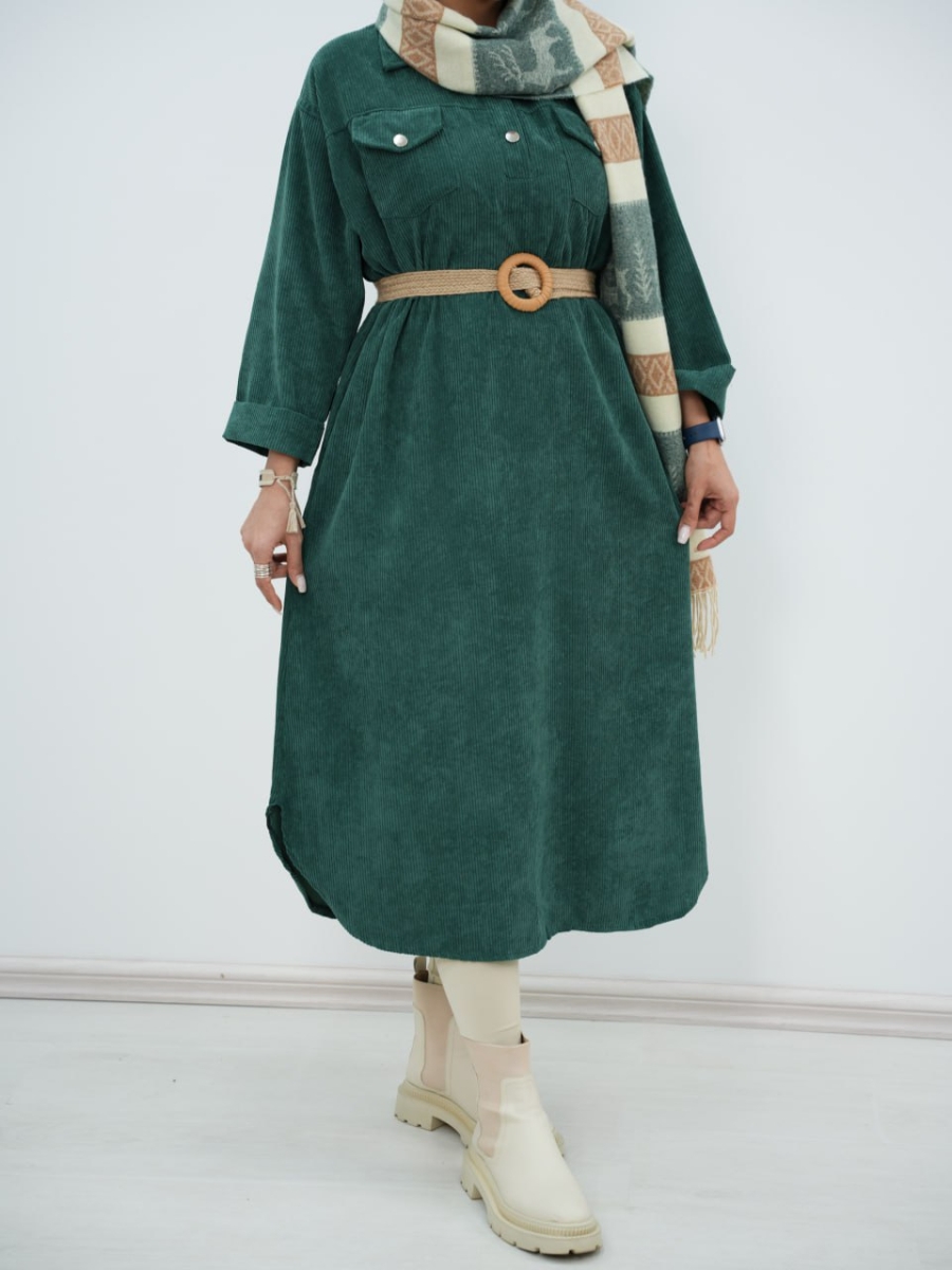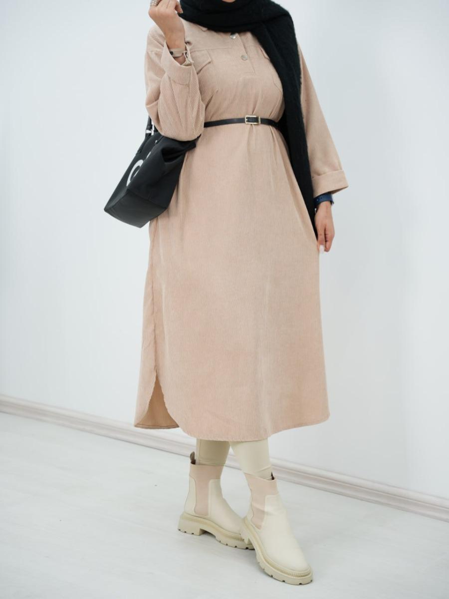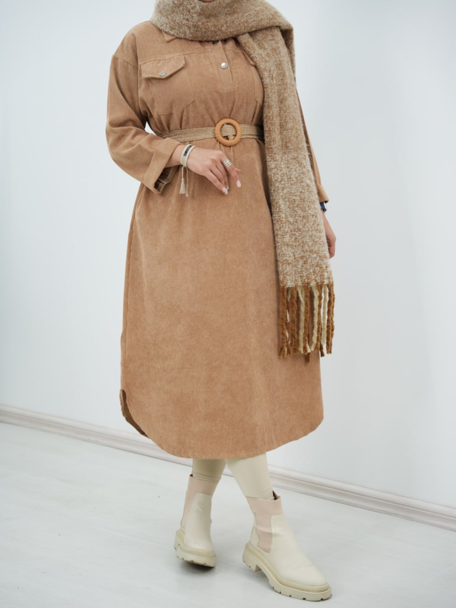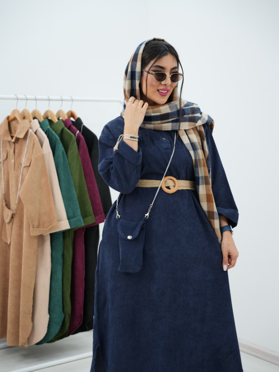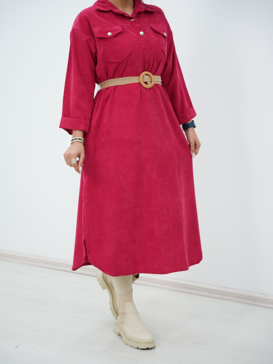 پیراهن مخمل کبریتی کیف دار سیما کد6394