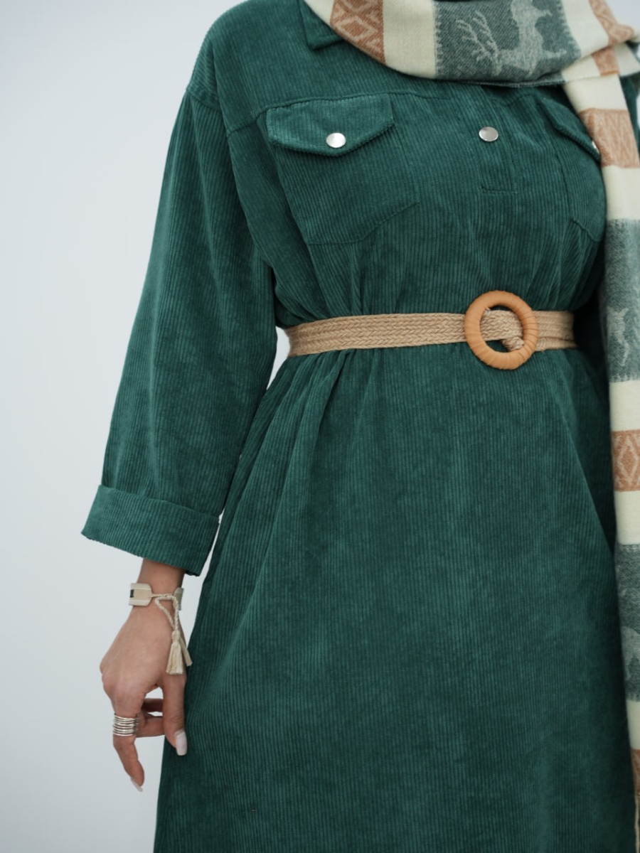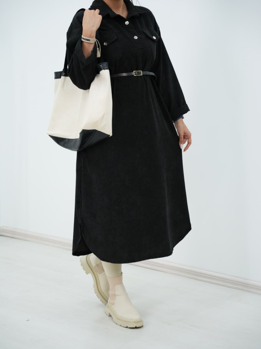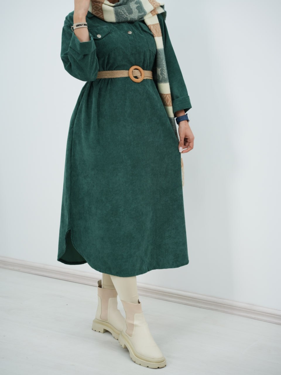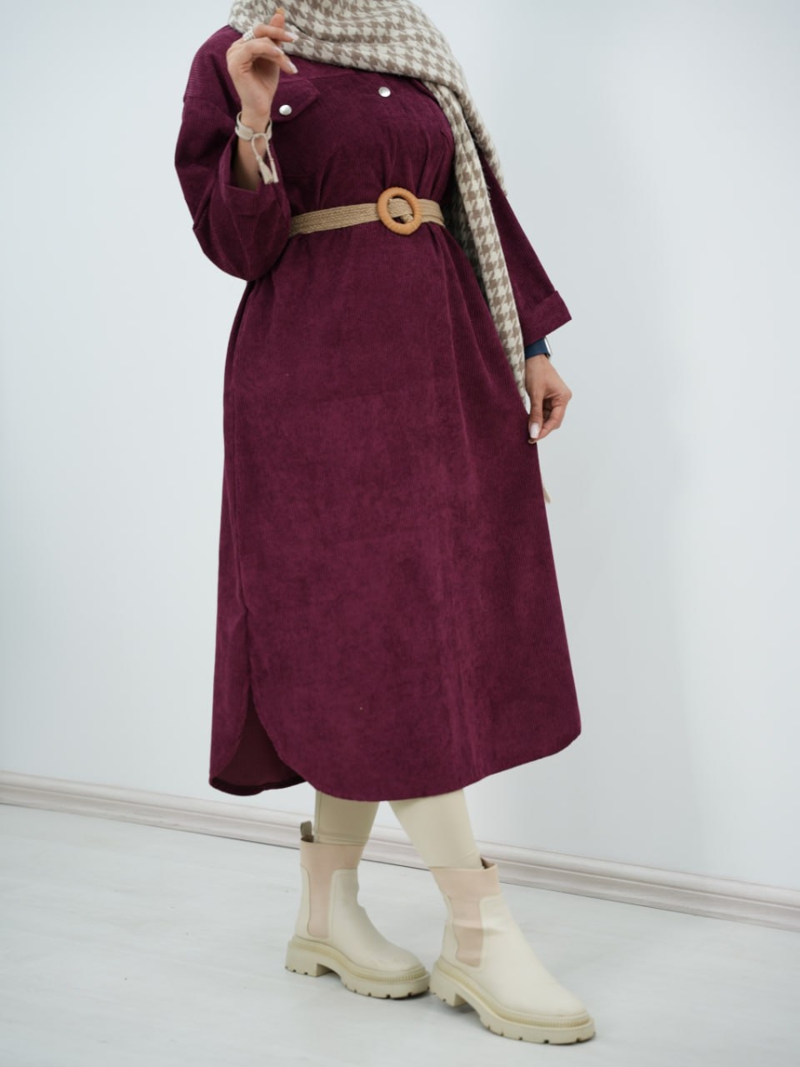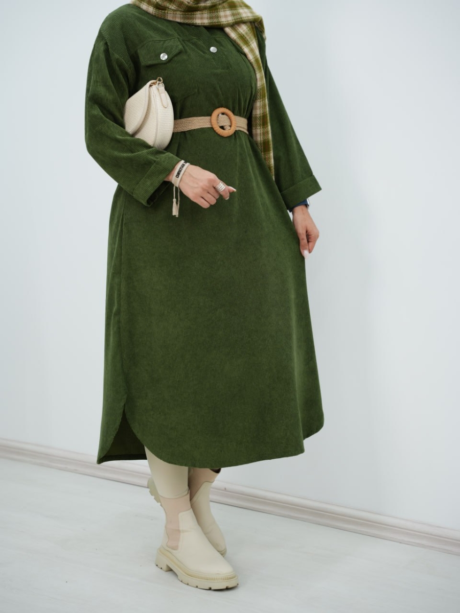 پیراهن مخمل کبریتی کیف دار سیما کد6394