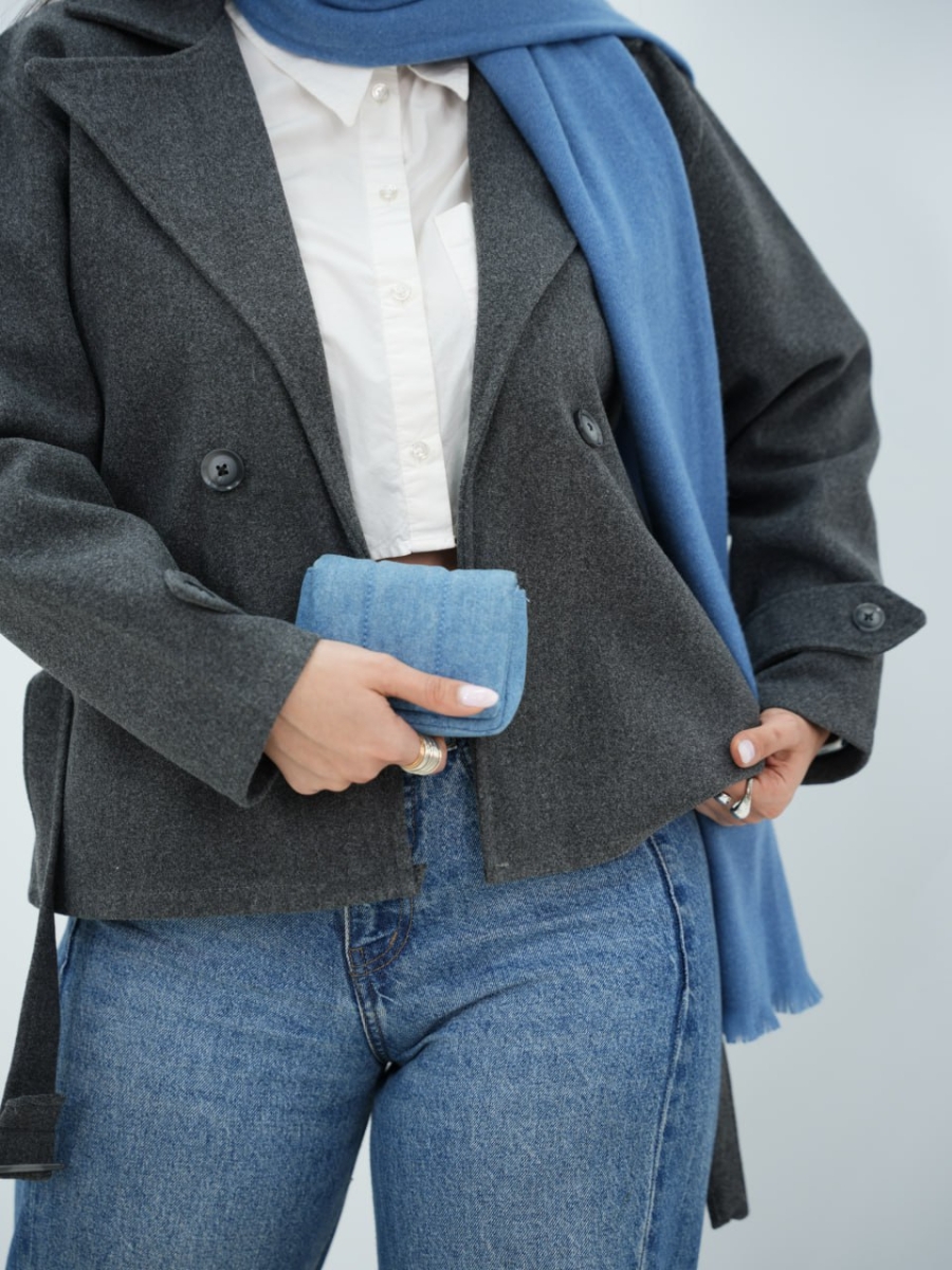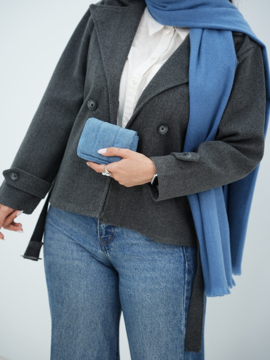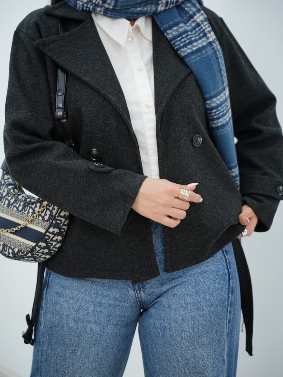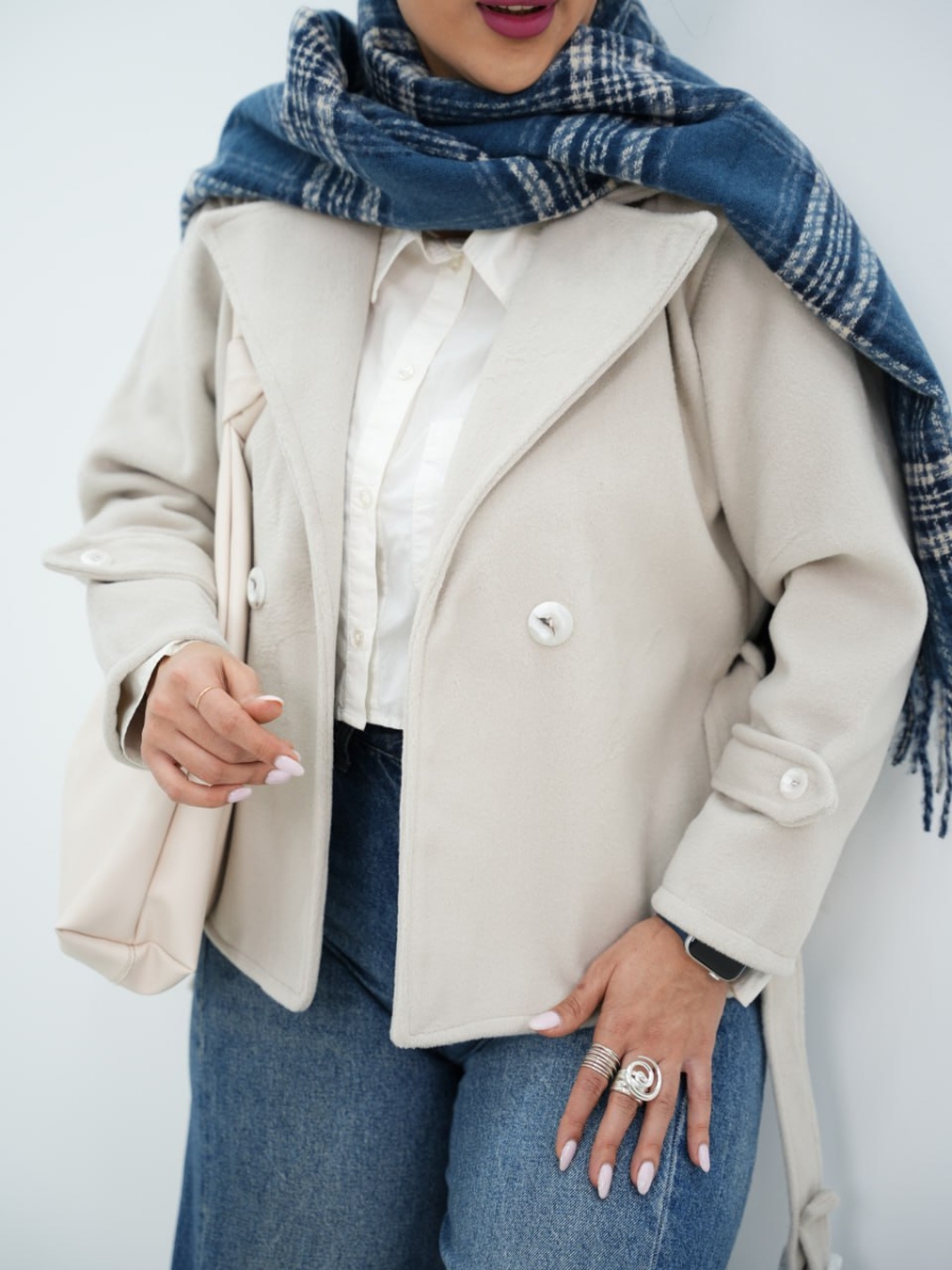 پالتو فوتر کوتاه کمردار مومو کد6470