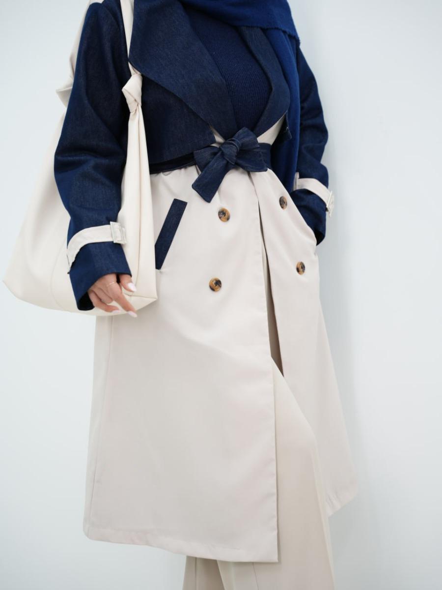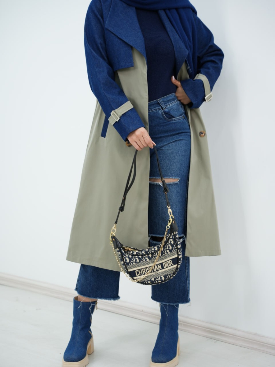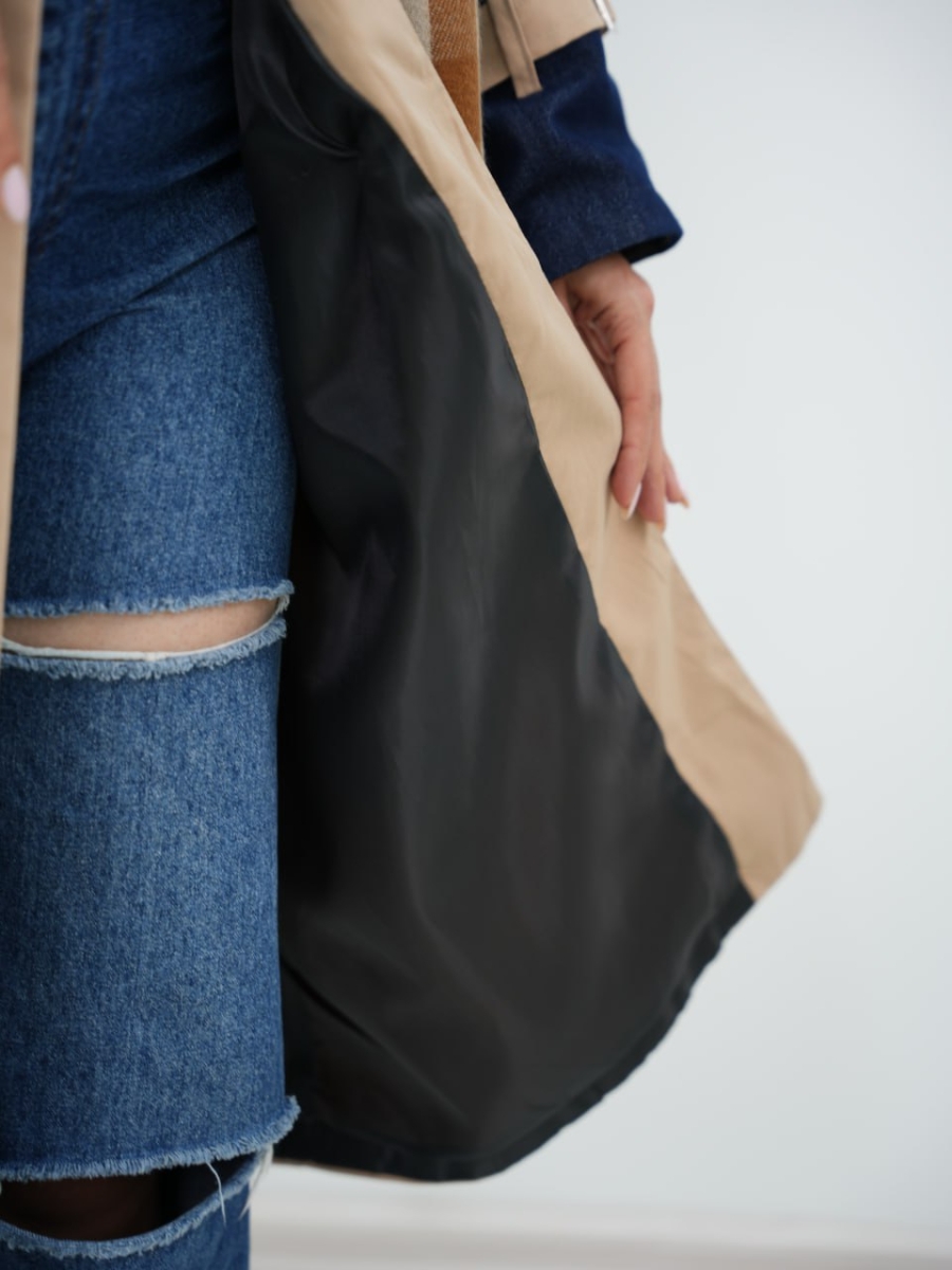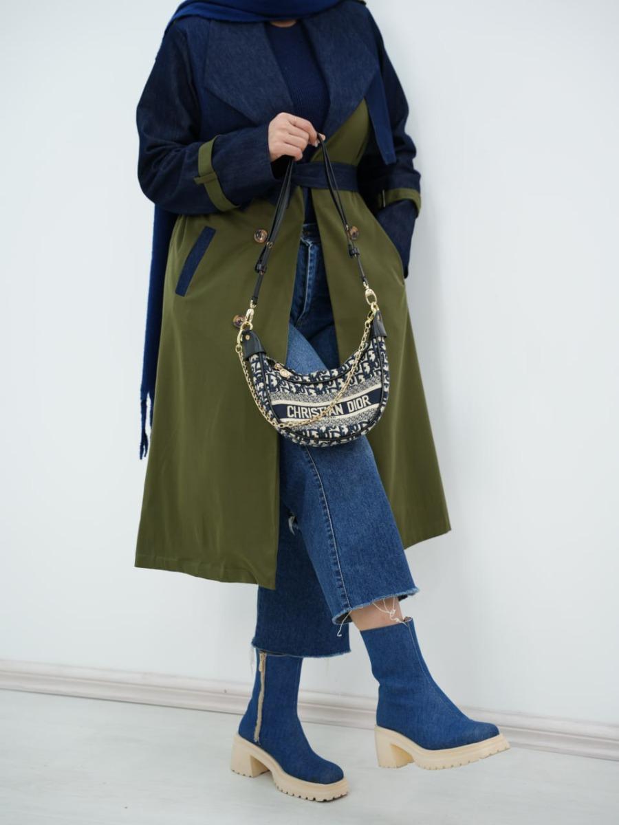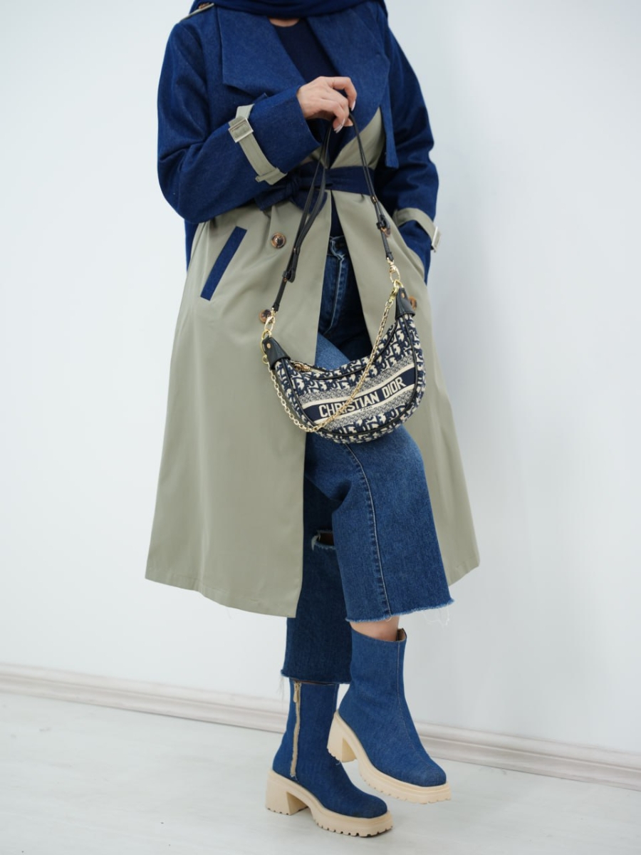 بارونی بلند ترکیبی جین کمردار مهوا کد6479