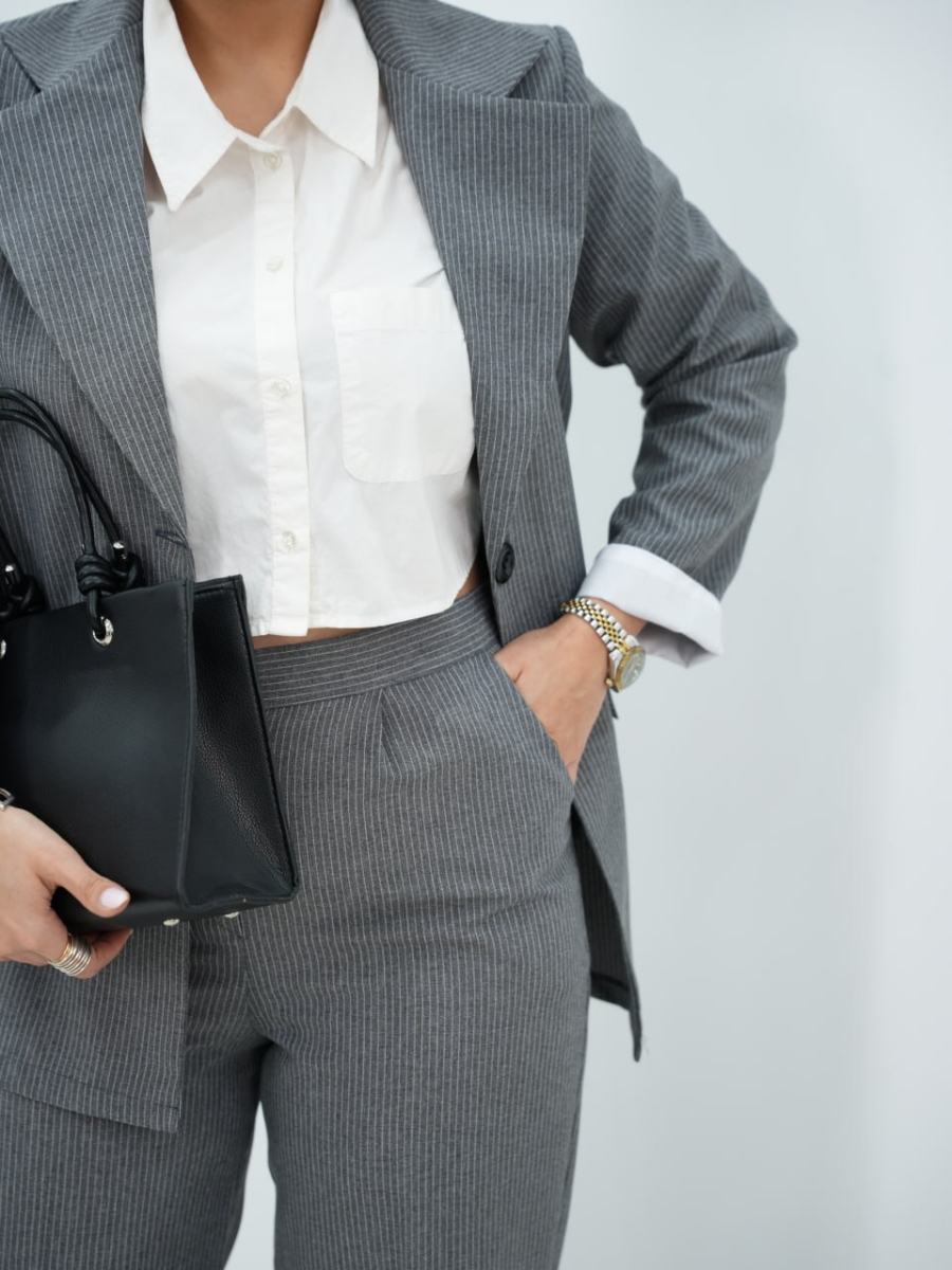 ست کت و شلوار اداری آستین سفید ملین کد6498