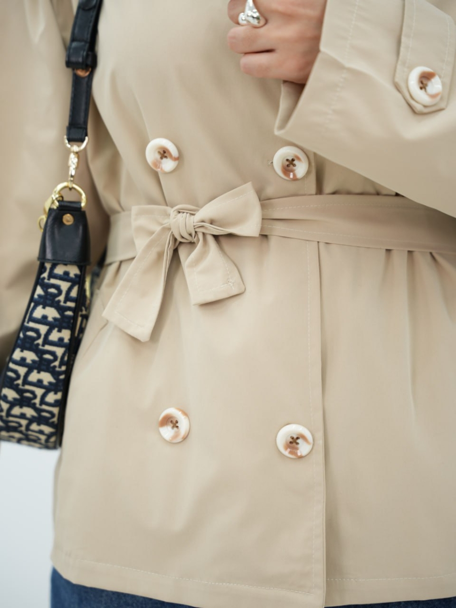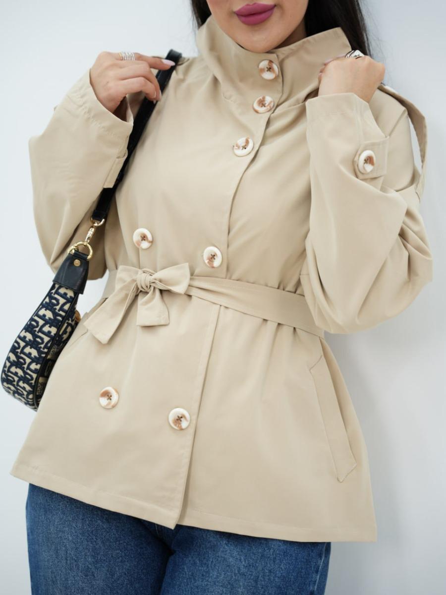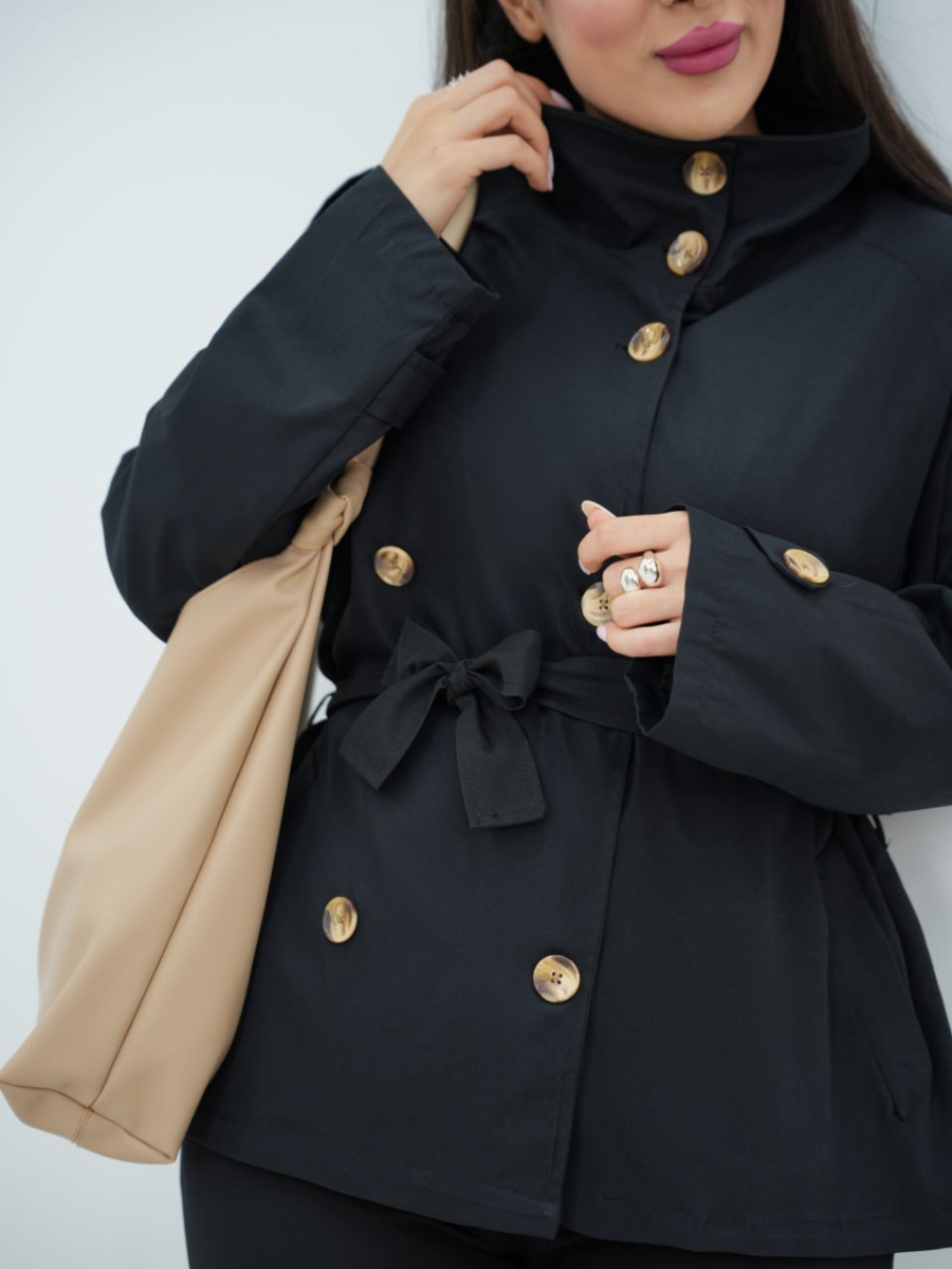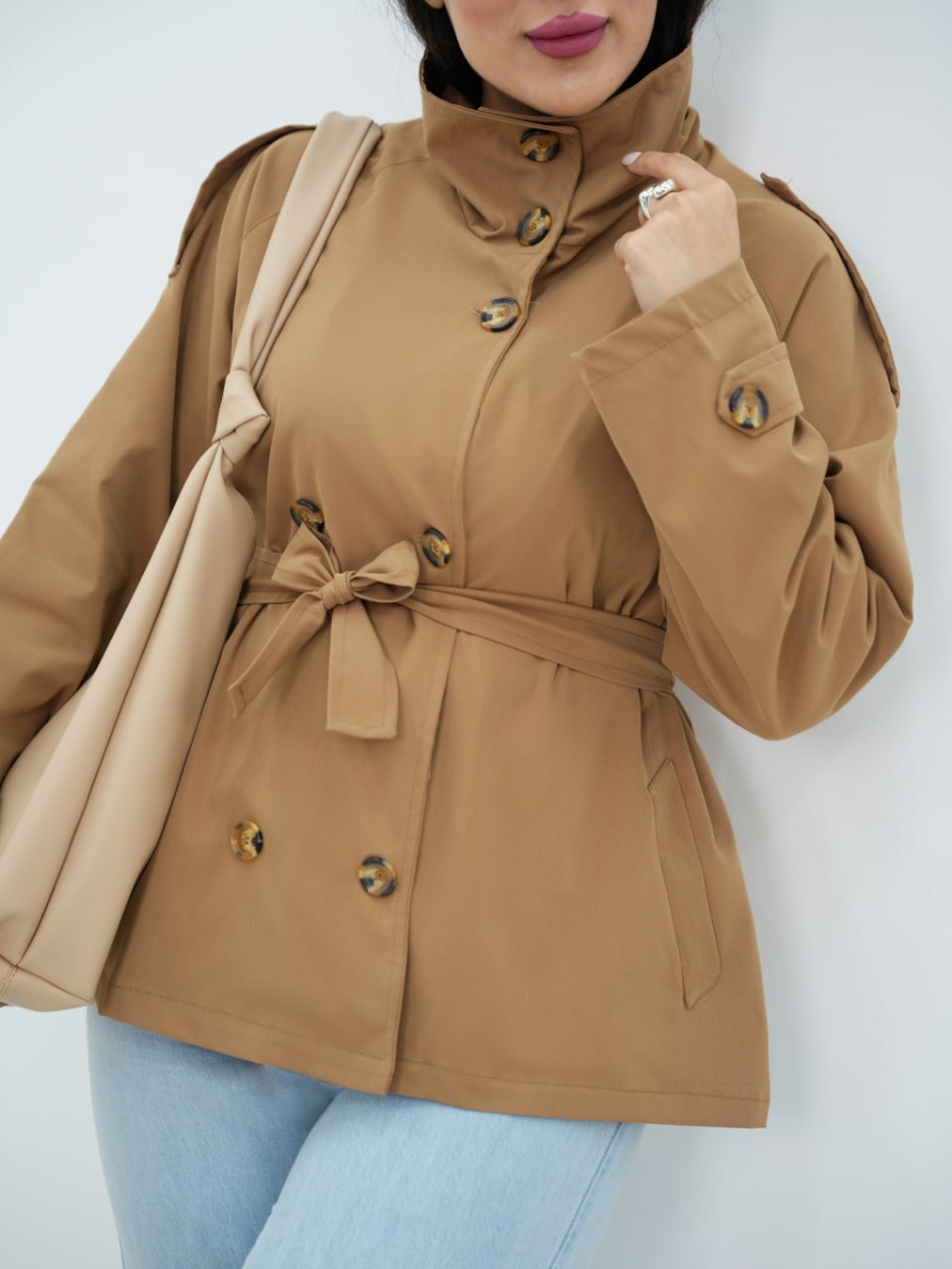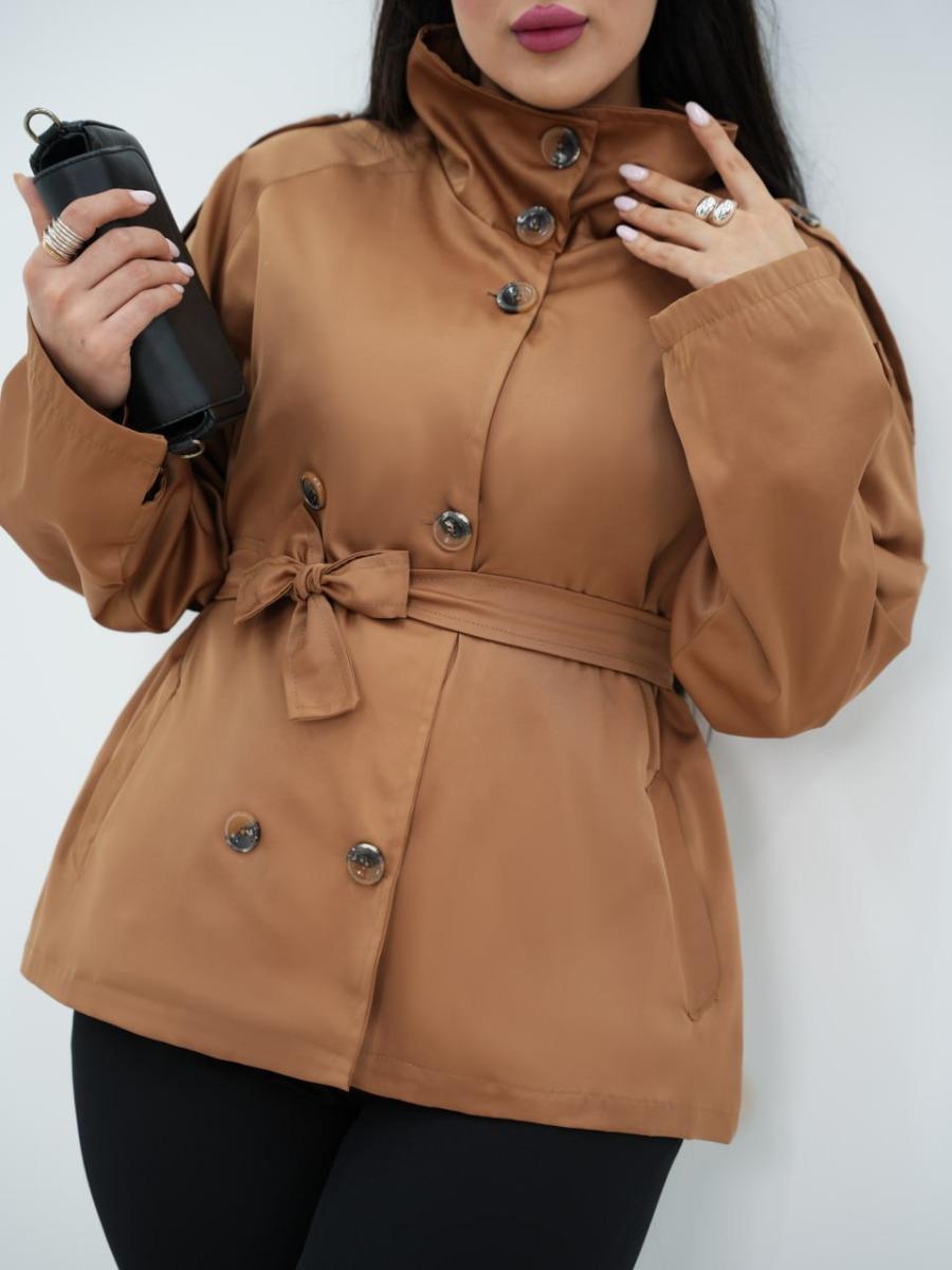 بارونی یقه ایستاده کمردار شکلات کد6506